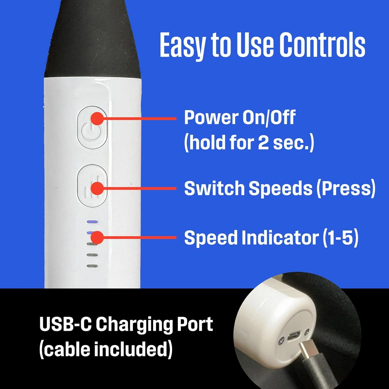 Experience ultimate relaxation and recovery with the Westinghouse Long Handle Massage Gun! This massage gun is designed with a long curved handle to comfortably reach and relieve pain and tension along your back and shoulders. Customize your massage experience from gentle relaxation to deep tissue relief by choosing between 5 levels of percussion massage speeds; perfect for easing muscle tension and improving circulation. The extended massage gun is designed with 4 specialized attachments that target specific muscle groups and provide varying levels of pressure and intensity. Ideal for use at home, in the gym, or on the go with its cordless design, and lasts up to 5 hours on a single charge. Great for long, uninterrupted relaxation and recovery.